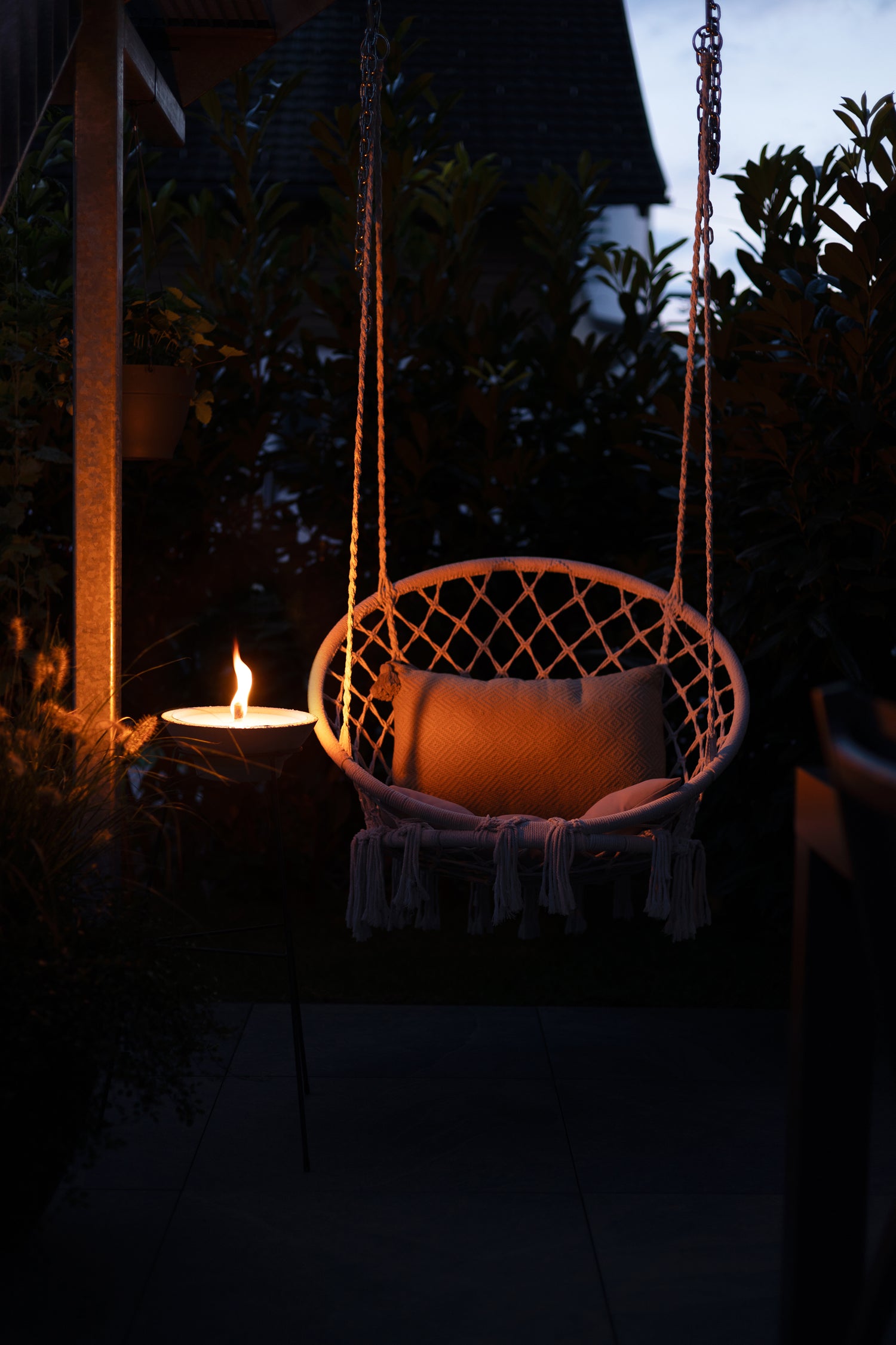 Genieße die Abendstunden mit einem angenehmen Feuer im Hintergrund, welches ein natürliches und langanhaltendes Licht über die Umgebung wirft.